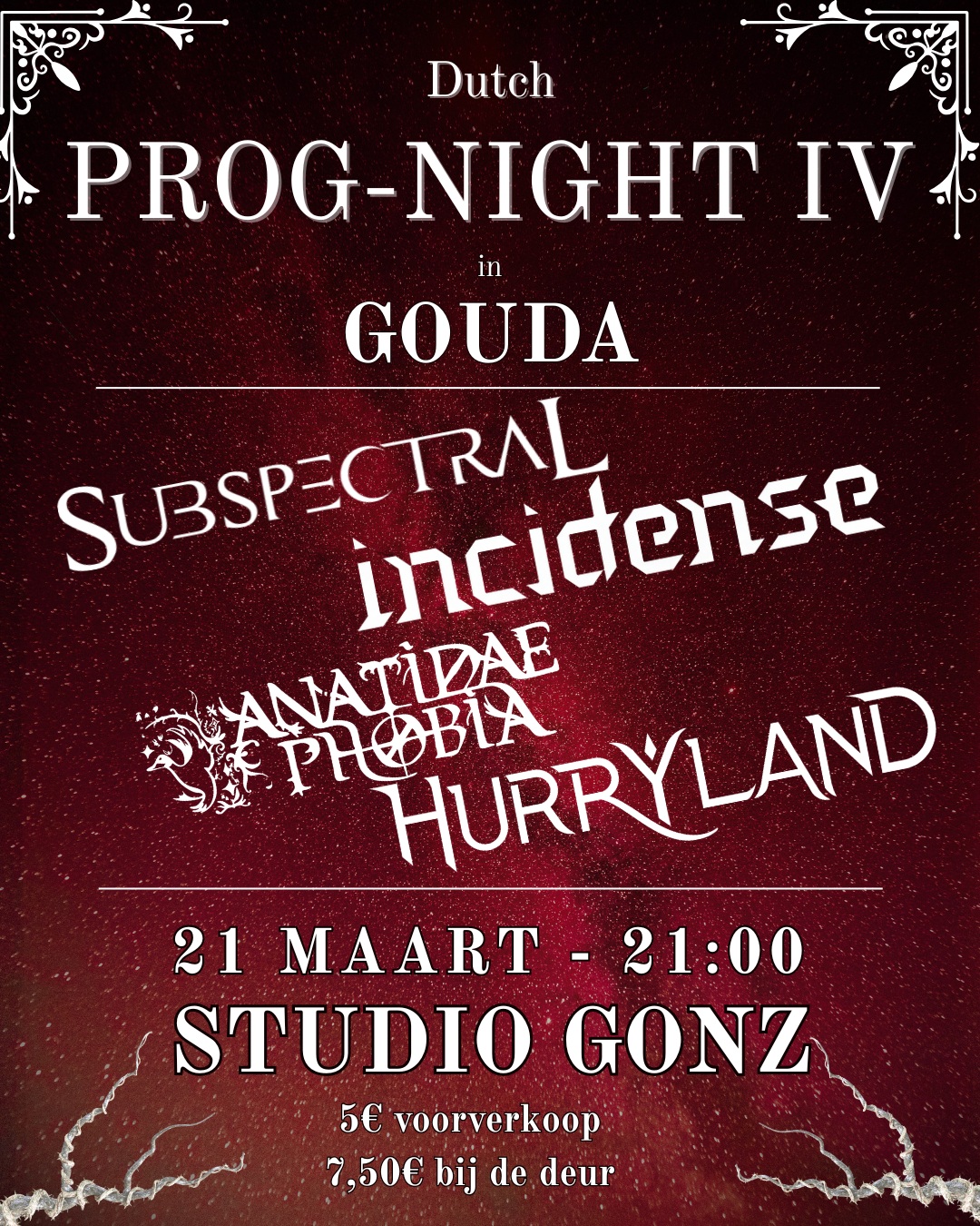 Dutch Prog-Night IV in StudioGonz - Progessive Rock/Metal Night - zaterdag 21 maart 2026 - STUDIOGONZ - Cafe/Podium/Club in Gouda